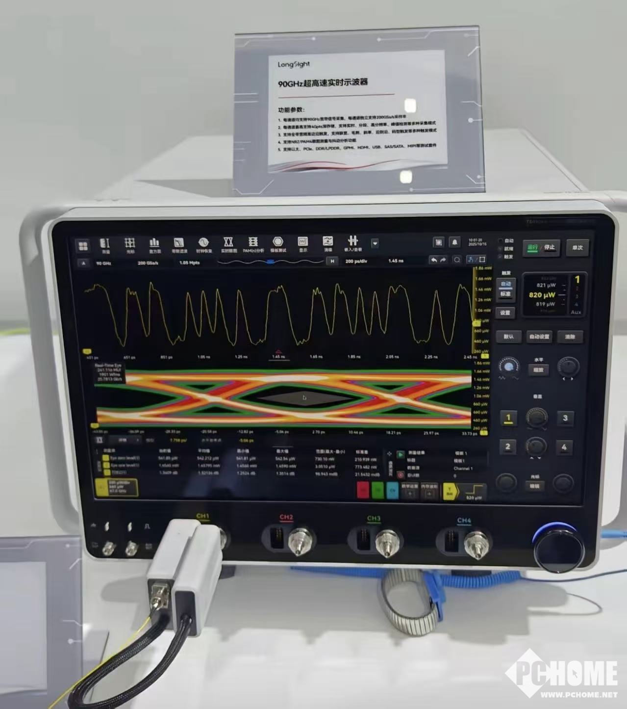10月15日,新凯来旗下子公司万里眼在2025湾芯展上,全球首发新一代超高速实时示波器。该产品带宽突破90GHz,采样率达200GSa/s,存储深度最高4Gpts,关键指标跃居全球第二,将国产示波器性能提升500%。此前国内高端示波器带宽上限仅18GHz,与海外存在代差,此次突破打破了《瓦森纳协定》对60GHz以上仪器的技术封锁,可为7nm及3-5nm制程芯片测试提供支撑。万里眼CEO刘桑表示,产品已实现商用,下单后5-8周可交付。