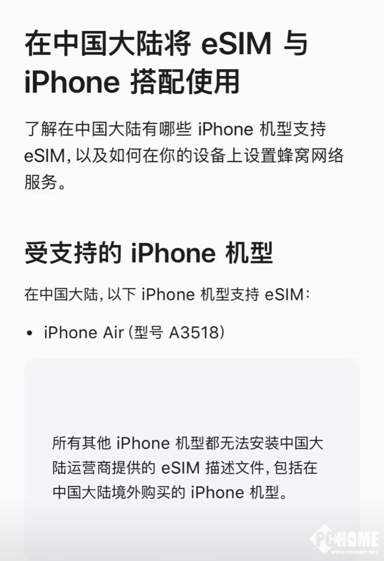 苹果于10月14日宣布,国行iPhone Air将于10月17日9点开启预售,10月22日正式发售,这是苹果首款在国内支持eSIM技术的手机。该机型彻底取消实体SIM卡槽,采用纯eSIM设计,激活后保持无合约状态,用户可自由选择三大运营商服务。值得关注的是,国行版本支持境内外eSIM服务切换,出国时可直接激活当地运营商方案,实用性优于外版机型。苹果官网已同步更新eSIM服务说明,明确三大运营商均提供适配支持。