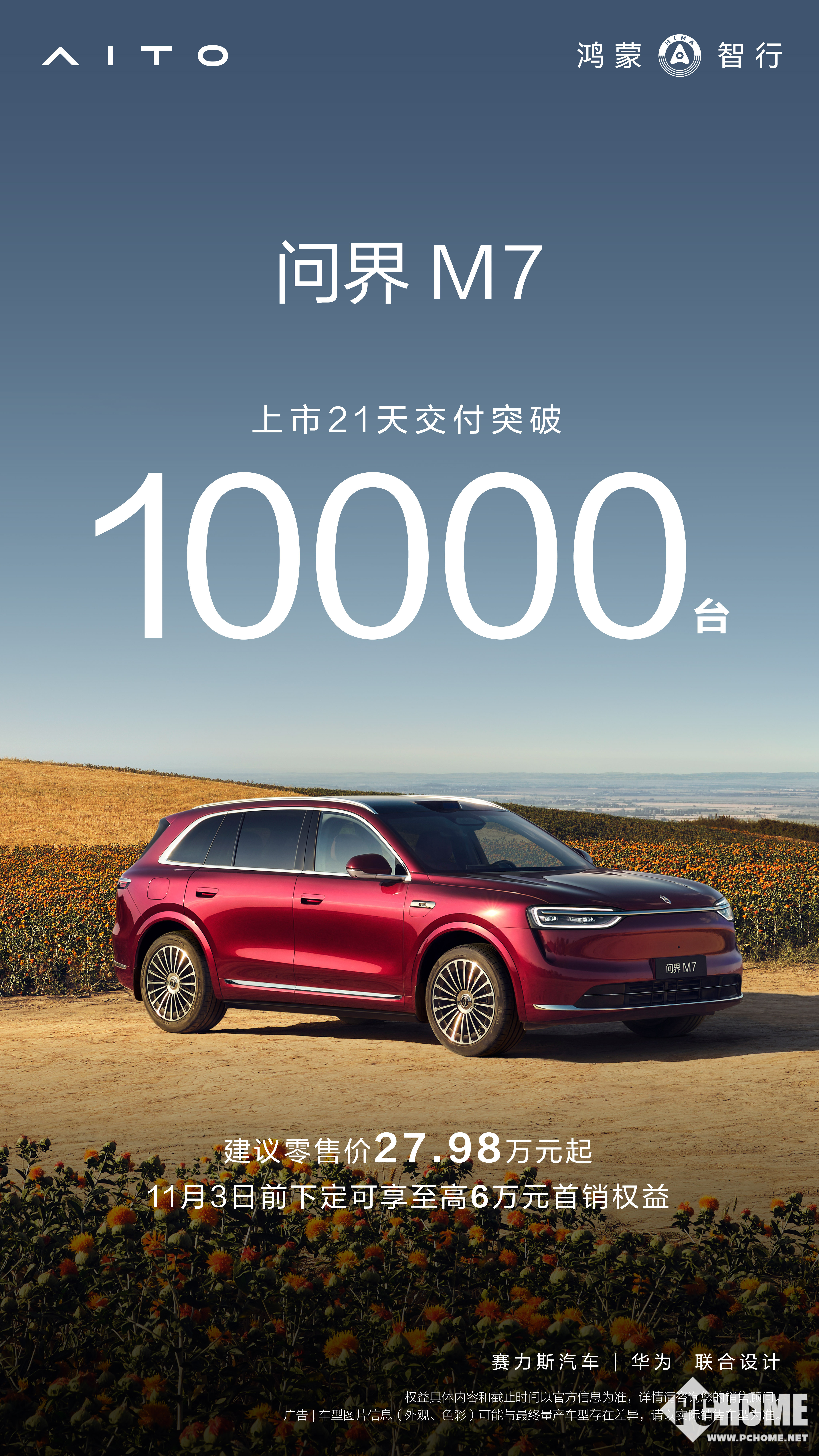 2025年10月17日,鸿蒙智行官宣,全新问界M7汽车上市21天交付突破10000台,产能正持续爬坡。