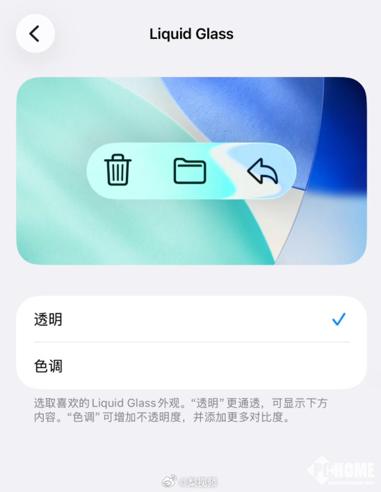 10月21日,苹果为iPhone用户推送iOS 26.1开发者预览版Beta 4更新,内部版本号为23B5073a。本次更新新增Liquid Glass液态玻璃透明度切换开关,之前系统默认为“透明”样式,不分用户反馈这一设计看不清文字。现在可在“设置-显示与亮度- Liquid Glass中切换为“色调”模式,增加背景不透明度,强化对比度,增强通知可读性。