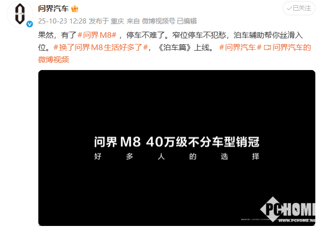 2025年10月23日消息,近日,问界汽车在社交媒体发布视频,宣布“问界M8 40万级不分车型销冠”。问界M8增程版于今年4月16日率先上市,纯电版于8月25正式上市,不足半年时间现已成为40万级销量冠军。