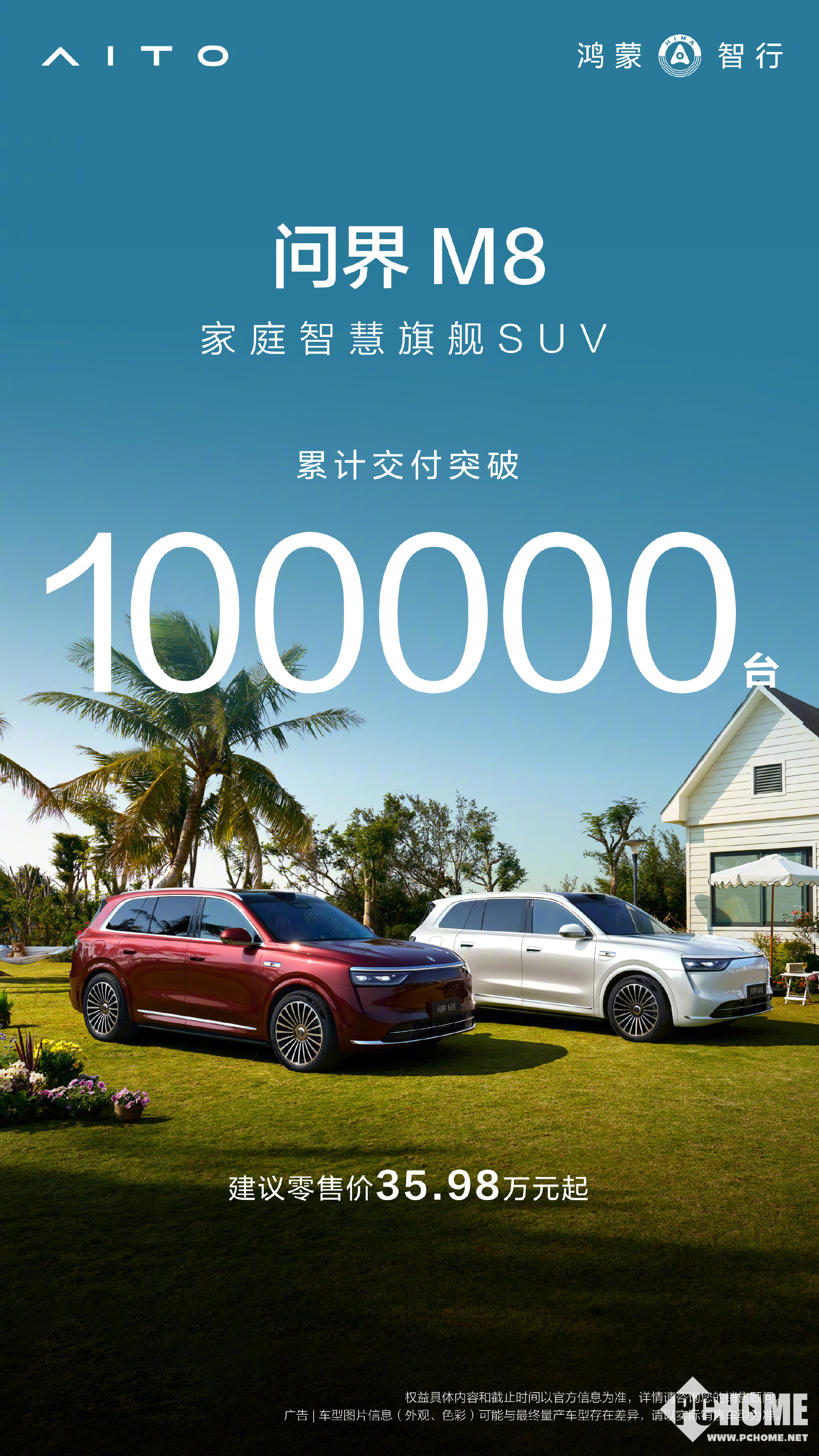 销冠之路有迹可循,问界M8上市22天大定突破7万台、34天大定突破8万台,问界M8纯电版预售72小时,小订量突破15000台,均创下鸿蒙智行单车型同期销售纪录。9月29日,华为常务董事、终端BG董事长余承东发文,问界M8交付已突破10万台。