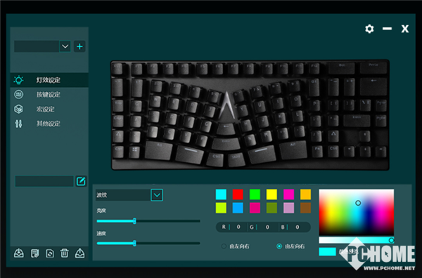 它不但全键无冲,还可以在驱动中自定义每个按键的键值,动态灯效、亮暗调节、录制功能。