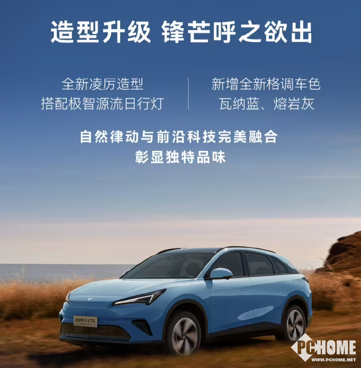 据介绍,北汽极狐全新阿尔法T5汽车迎来造型升级,换装全新封闭式前脸,前包围进气格栅和两侧导流槽样式同步调整,全系新增标配主动式下部进气格栅;新增瓦纳蓝、熔岩灰配色,尺寸为4760×1936×1650mm、轴距2845mm,带有T形日间行车灯。新车动力选择丰富,增程版搭载1.5升增程系统,CLTC纯电续航215公里,可满足日常通勤与长途出行需求;纯电版提供多电池容量选择,最高CLTC续航达705公里。