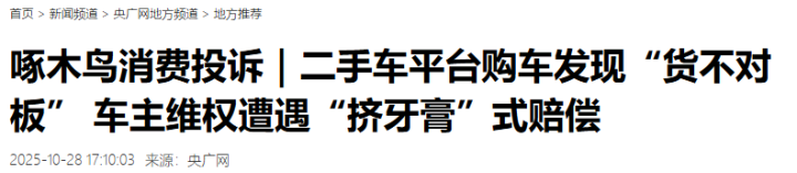 2025年10月29日消息,据央广网报道,有消费者称,在瓜子二手车平台花费5.23万购车,却遭遇“货不对板”。瓜子二手车平台回应称,此为“个别人员操作失误”,不存在欺诈行为。