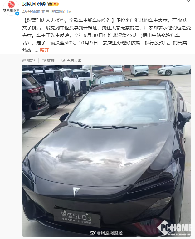 2025年10月30日消息,据凤凰网财经报道,近期安徽省淮北市有多位消费者反映,在深蓝4S店购买的新车无法提车,还有的全款购车却无法获得车辆合格证。目前,渉事深蓝4S店已经关门停业,深蓝汽车相关人士回应却称,他们也是受害者。