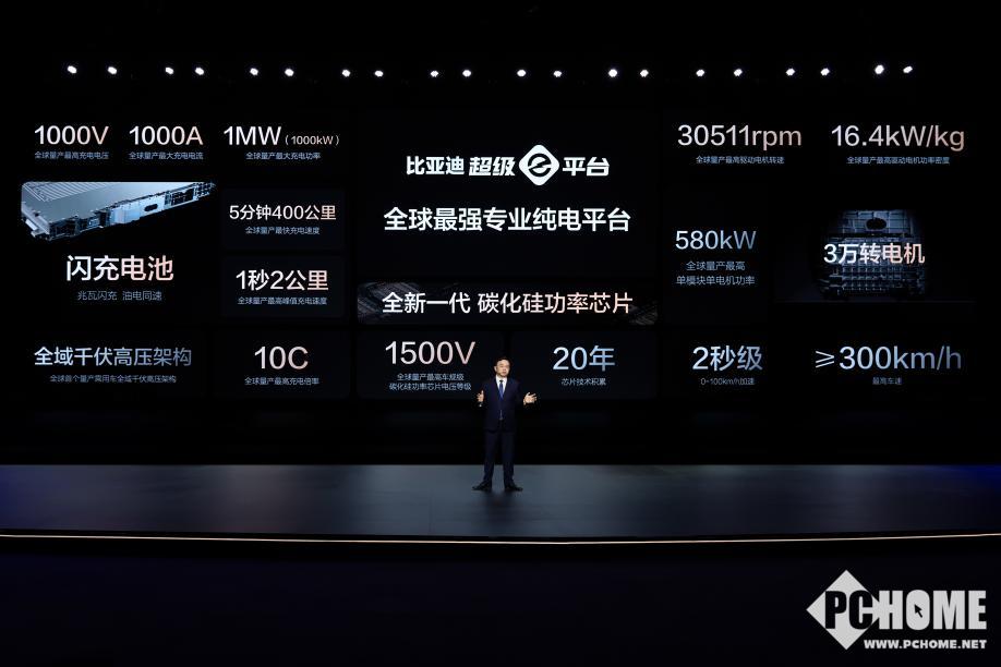 比亚迪“兆瓦闪充”采用全域千伏高压架构,将电压提升至1000V,配合1000A的最大充电电流,使充电功率达到1MW。同时,自主研发1500V耐压的车规级碳化硅功率芯片,优化高压部件。搭配专为兆瓦闪充设计的电池,通过优化电解液、隔膜、电极材料等降低内阻,设计双电子流通道减少产热,并采用冷媒直冷技术提升散热效率。此外,车端与桩侧协同优化,桩侧配备超高压充电桩,通过自研储能系统确保稳定输出。