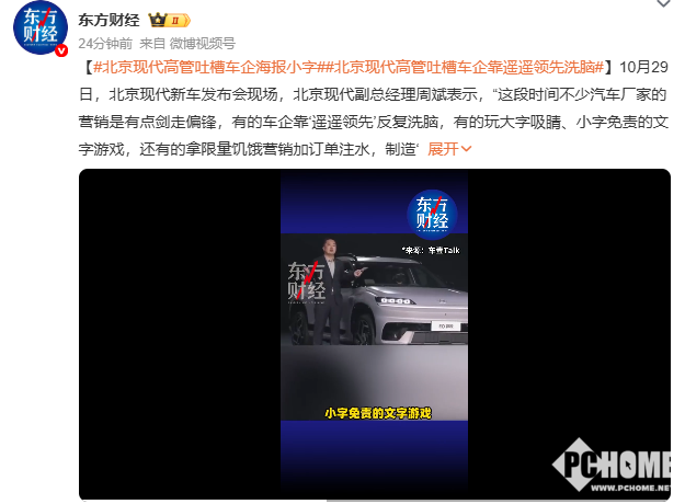 2025年10月30日消息,据东方财经报道,近日在北京现代新车发布会上,北京现代副总经理周斌吐槽汽车圈营销乱象称,有的车企玩大字吸睛、小字免责的文字游戏,还有的拿限量饥饿营销加订单注水,制造“抢购”焦虑。此言论一出,引发网友纷纷猜想,这究竟是哪些车企的营销手段?