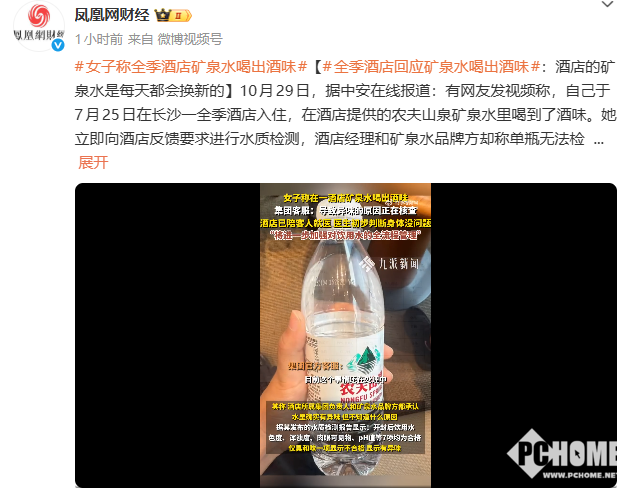 2025年10月30日消息,据凤凰网财经等多家媒体报道,近日有消费者反映,自己入住长沙的全季酒店,饮用酒店提供的农夫山泉矿泉水时发觉口味异常。经过水质检测发现,渉事全季酒店提供的农夫山泉矿泉水确有异味。全季酒店所属华住集团负责人与矿泉水品牌方也均承认确实有异味,但不知道什么原因。