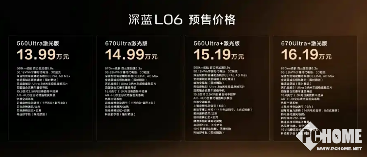 10月30日,深蓝L06正式开启预售,新车共推出4款车型,预售价区间为13.99万元-16.19万元。同时,官方给出了999元膨胀抵扣3999元购车款的预售膨胀礼,相当于预售期给出3千元的额外优惠。