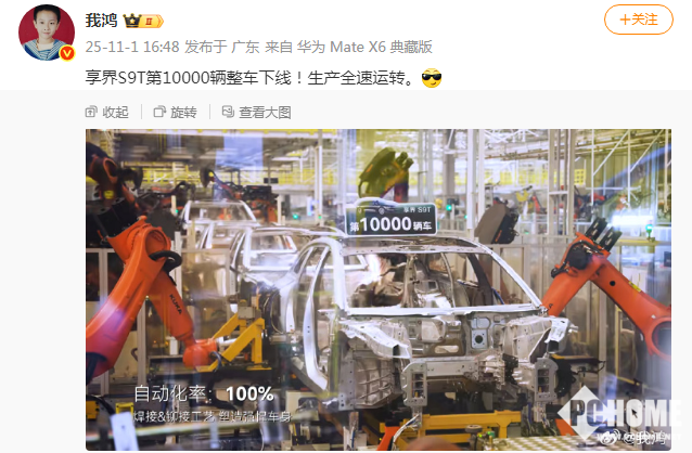 2025年11月2日消息,据视频博主爆料,享界S9T第1万辆整车下线生产,10月份享界超级工厂单日生产突破365台,创最高纪录。