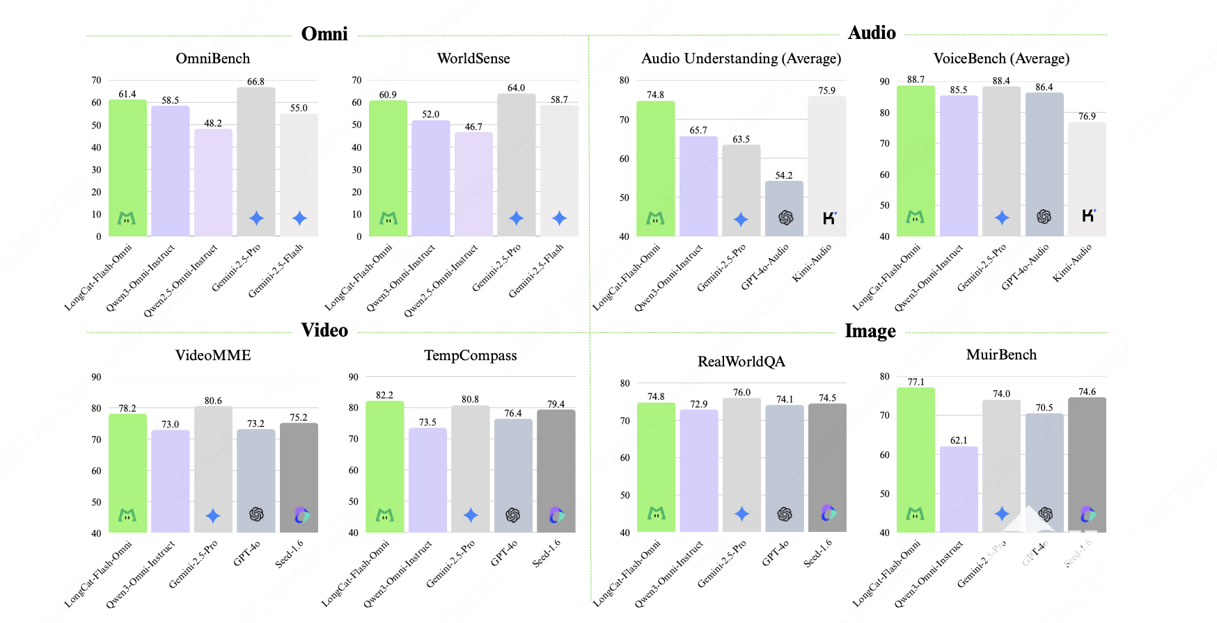 综合评估显示,该模型在Omni-Bench等全模态基准测试中达到开源SOTA水平,文本、图像、音频、视频等单模态任务均位居开源前列。其中音频理解与语音交互类人性指标优于GPT-4o,视频到文本任务性能当前最优,跨模态理解比肩Gemini-2.5-Pro。 目前,LongCat-Flash-Omni已在Hugging Face与Github同步开源,官方App也开启公测,支持联网搜索与语音通话功能。开发者可通过开源平台探索应用,美团也期待通过社区反馈持续优化模型性能。