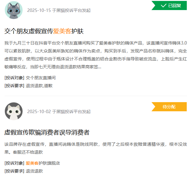 据黑猫投诉平台显示,有消费者反映,使用爱美客“嗨体”没有实际效果,还有称,使用爱美客“嗨体”后,脸上产生红、敏、痛等不良反应。