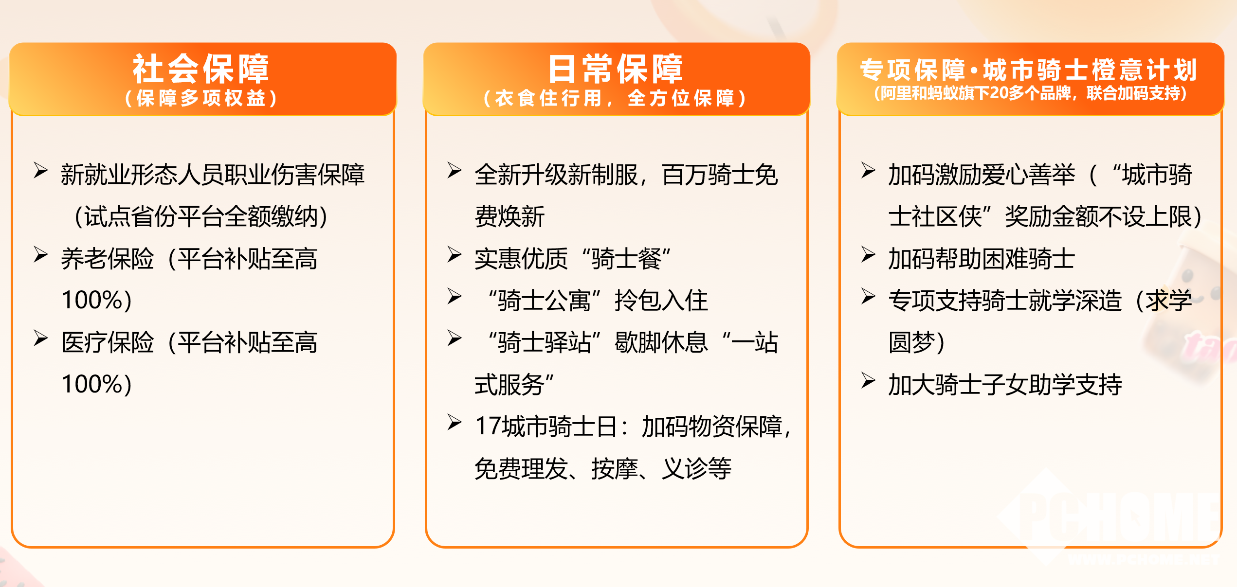此外,饿了么同步升级多项保障:全量足额缴纳“新职伤”保障,为所有骑士免费加投“防暑险”,覆盖热射病诊疗费用;残障骑士可享物资、客服及无障碍沟通功能专项支持。阿里与蚂蚁旗下20余品牌还联合启动“城市骑士·橙意计划”,对骑士见义勇为等善举设无上限奖励,同时支持骑士就学深造与子女助学,多维度构建骑士职业保障体系。