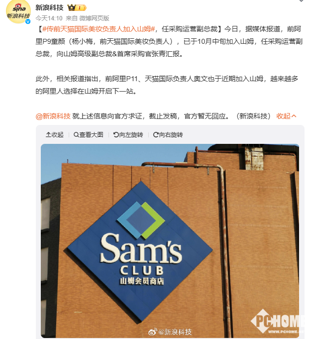 2025年11月5日消息,据新浪科技报道,前天猫国际美妆负责人杨小梅(阿里巴巴职级P9,花名童颜)已经加入山姆,任采购运营副总裁,向山姆高级副总裁、首席采购官张青汇报。如果真如传闻所言,这已经是近期第二位前阿里巴巴高管加入山姆,目前官方并未对此做出回应。