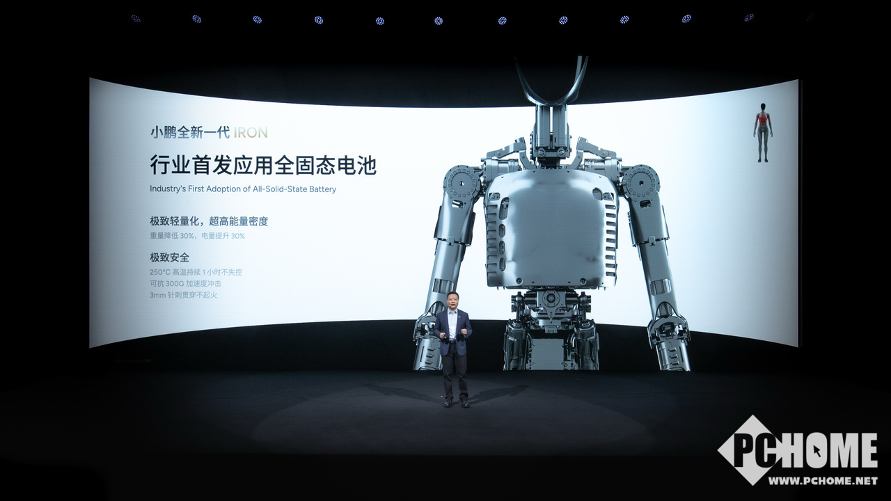 IRON搭载物理世界大模型,拥有3颗图灵AI芯片,构建VLT+VLA+VLM高阶大小脑能力组合,可实现对话、行走、交互等高阶智能。IRON搭载行业首发应用全固态电池。不过小鹏并未透露该电池的具体参数,以及机器人的续航时间。IRON还全球首发机器人室内场景AEB,可最大程度保护物理AI世界参与者安全,并扩展第四法则,隐私数据不出机器人。