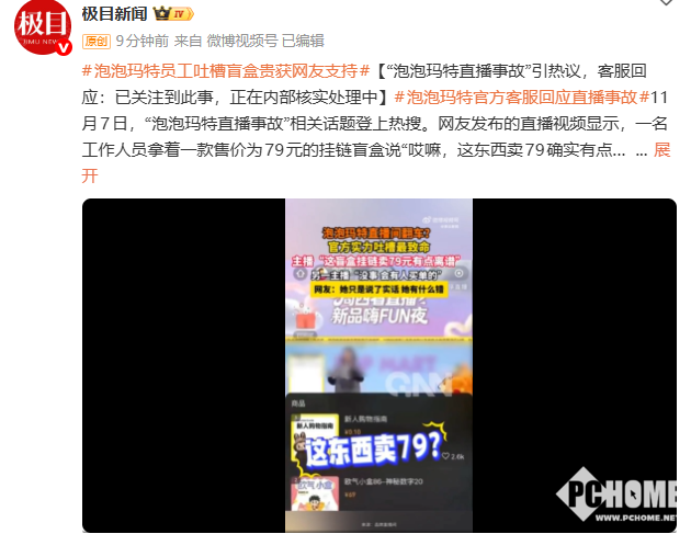 2025年11月7日消息,在泡泡玛特电商直播间,一名工作人员在售卖旗下Dimoo盲盒系列时,无意间说,“哎嘛,这东西(泡泡玛特盲盒)卖79确实有点(贵)”。同直播间的另一位工作人员则回复称,“没事,会有人买单的”。此事被网友评论,一个骂公司黑心,一个骂消费者是韭菜,随后“泡泡玛特直播事故”相关话题登上热搜。