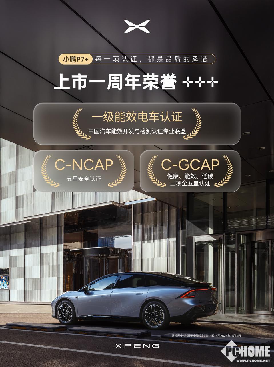 此外,小鹏汽车透露,过去一年,小鹏P7+还斩获了诸多亮眼的成绩:迎OTA核心功能升级94项;C-NCAP五星安全认证;C-GCAP健康/能耗/低碳三项全五星认证;一级能效电车认证;超10亿公里累计里程。