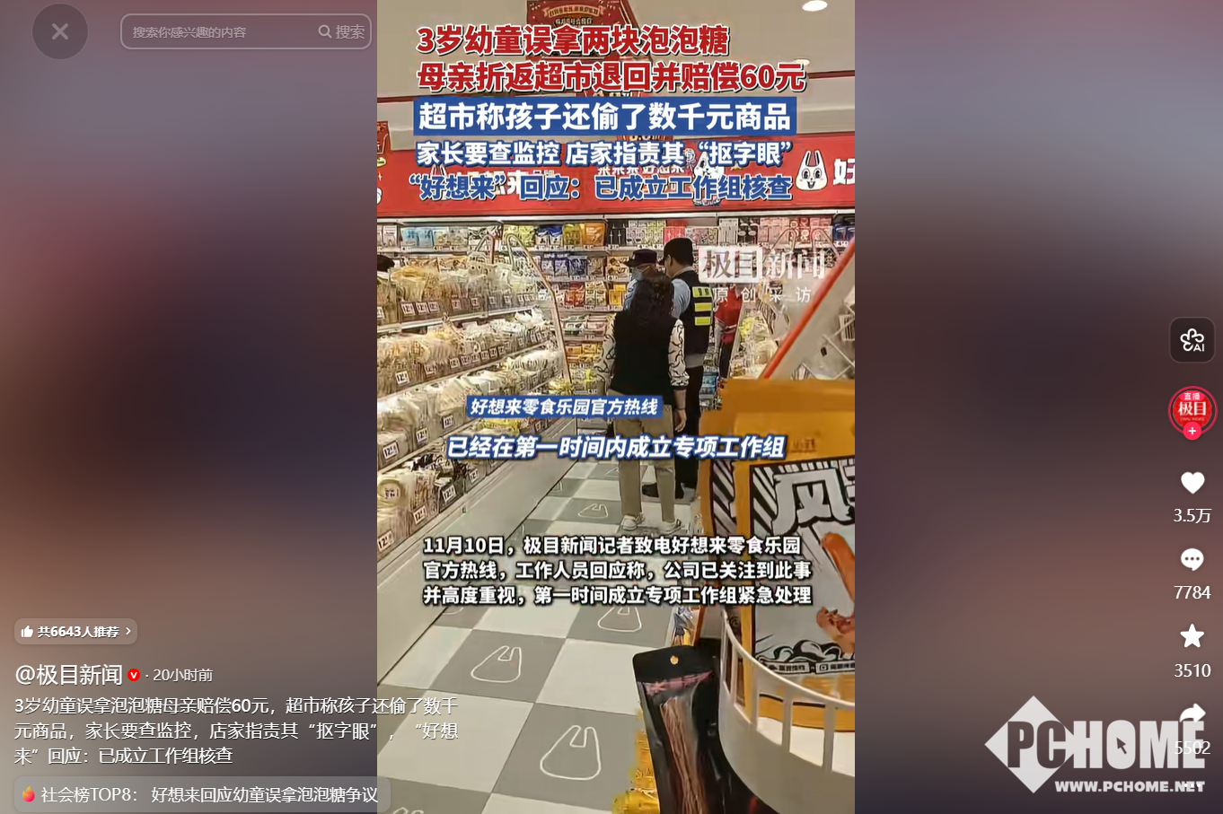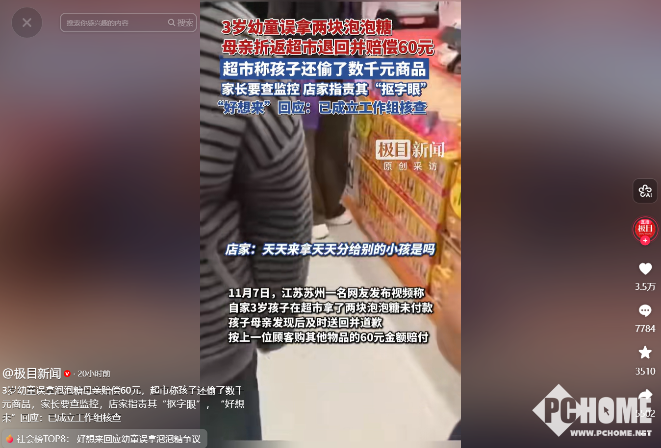 据介绍,渉事店铺为江苏苏州的“好想来零食乐园”,超市方面要求赔偿,要按照上一位顾客购物品的60元金额支付,孩子母亲同意并完成60元的赔付时,超市老板却公开指责称,近期超市店内丢失价值几千元的商品,也是均为其家孩子所为。孩子母亲要求超市提供证据,如果真为其孩子所为可以按照10倍、100倍赔偿。但超市始终未提供监控证据,并指责家长“抠字眼”。