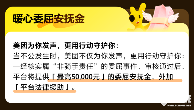2025年11月12日,美团正式推出骑手委屈关怀计划,以科技为依托,为骑手构建起一套暖心的权益守护体系。该计划直击骑手配送过程中可能遭遇的“委屈时刻”,明确提出最高5万元的委屈安抚金,并配套平台法律援助。