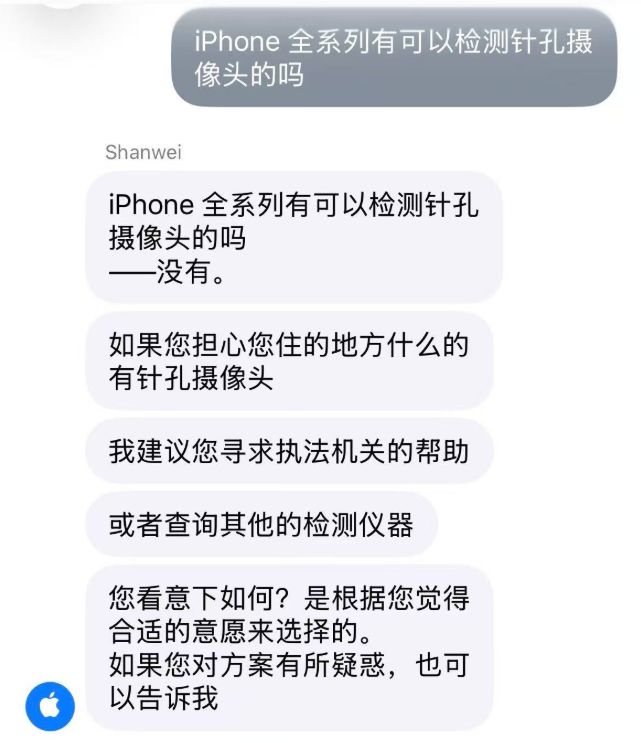 不过苹果技术支持明确表示,此类做法并非苹果官方支持或认证,iPhone系统并无专为检测针孔摄像头设计的功能。苹果指出,关于第三方网站或论坛分享的“隐藏摄像头检测”方法,仅供参考,不代表苹果的建议或保证。也就是说,用户不能依赖iPhone来完成对针孔摄像头的专业检测。