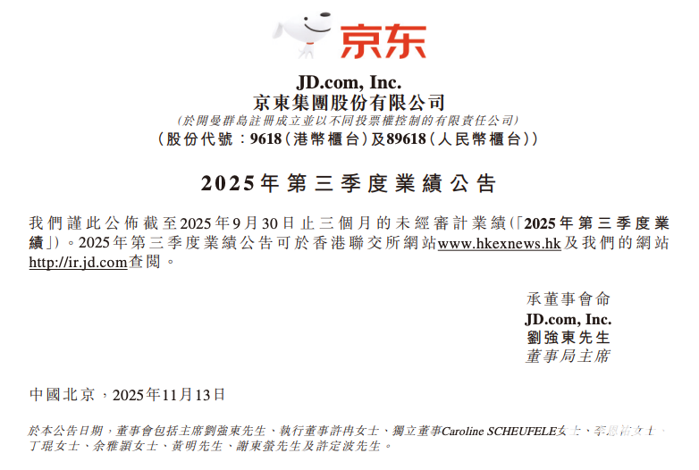 2025年11月13日,京东集团发布2025年Q3财报,营收2991亿元;归属净利润53亿元,相较上年同期117亿元暴跌54.7%。