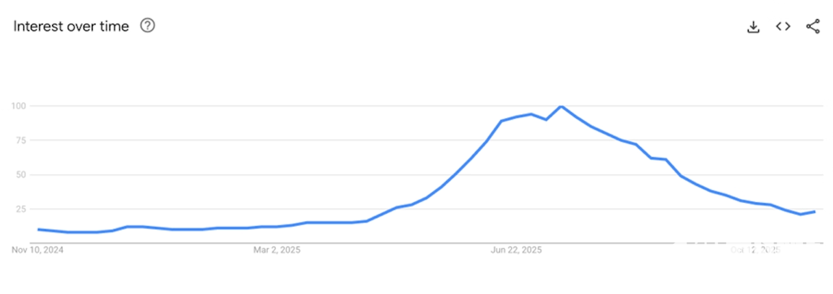然而,马克·里特森认为,泡泡玛特LABUBU已经彻底过气了,就像营销本身一样。谷歌趋势显示,今年7、8月LABUBU到达峰值,此后热度一路下降,当LABUBU商品巅峰期已过,泡泡玛特却在加紧生产,10月一共生产了3000万个娃娃,产量增长超过10倍。需求下降和产能过剩的现象越来越明显,在二手市场上,LABUBU售价大幅下降甚至低于原价,“末日”真的快到了。