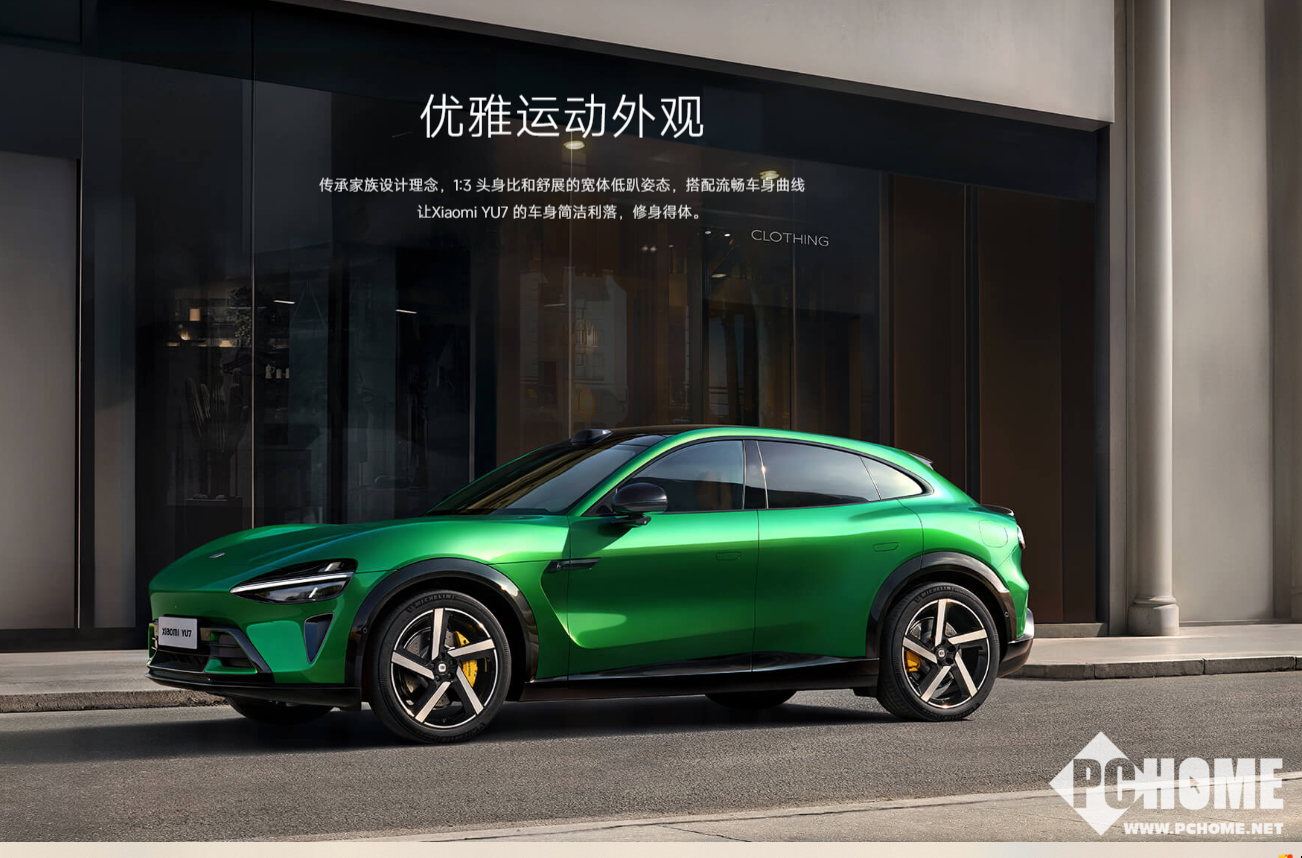 小米YU7是小米汽车首款纯电动SUV车型,于2025年6月26日正式发布,该车发布后热度极高,网友激情下单,18个小时锁单量就超过了24万辆。根据车身尺寸,小米YU7被定位为中大型纯电SUV,采用五门五座布局,车型有2025款超长续航后驱版、超长续航四驱Pro版、超长续航高性能四驱Max版三款。外观比较酷炫,采用轿跑式造型,车身是溜背式、还配备内翻式电动隐藏门把手、另有无边框车门等设计,使整个车身看起来光滑流畅,风阻系数也降低至0.245。细节上首部配置了镂空3D雕塑风道大灯,支持180°超广角照明,尾部采用透明U型尾灯,车身提供了宝石绿,钛金属色等九种配色。
