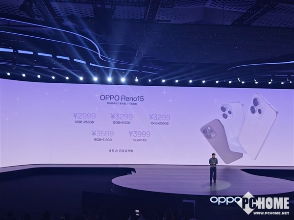 11月17日,OPPO Reno15正式发布,12GB+256GB版本定价2999元;16GB+256GB版本定价3299元;12GB+512GB版本定价3299元;16GB+512GB版本定价3599元;16GB+1TB版本定价3999元。,即日起开启预订,11月21日全渠道开售。此次新品以实况影像和精致设计为核心亮点,瞄准年轻潮流用户需求。
