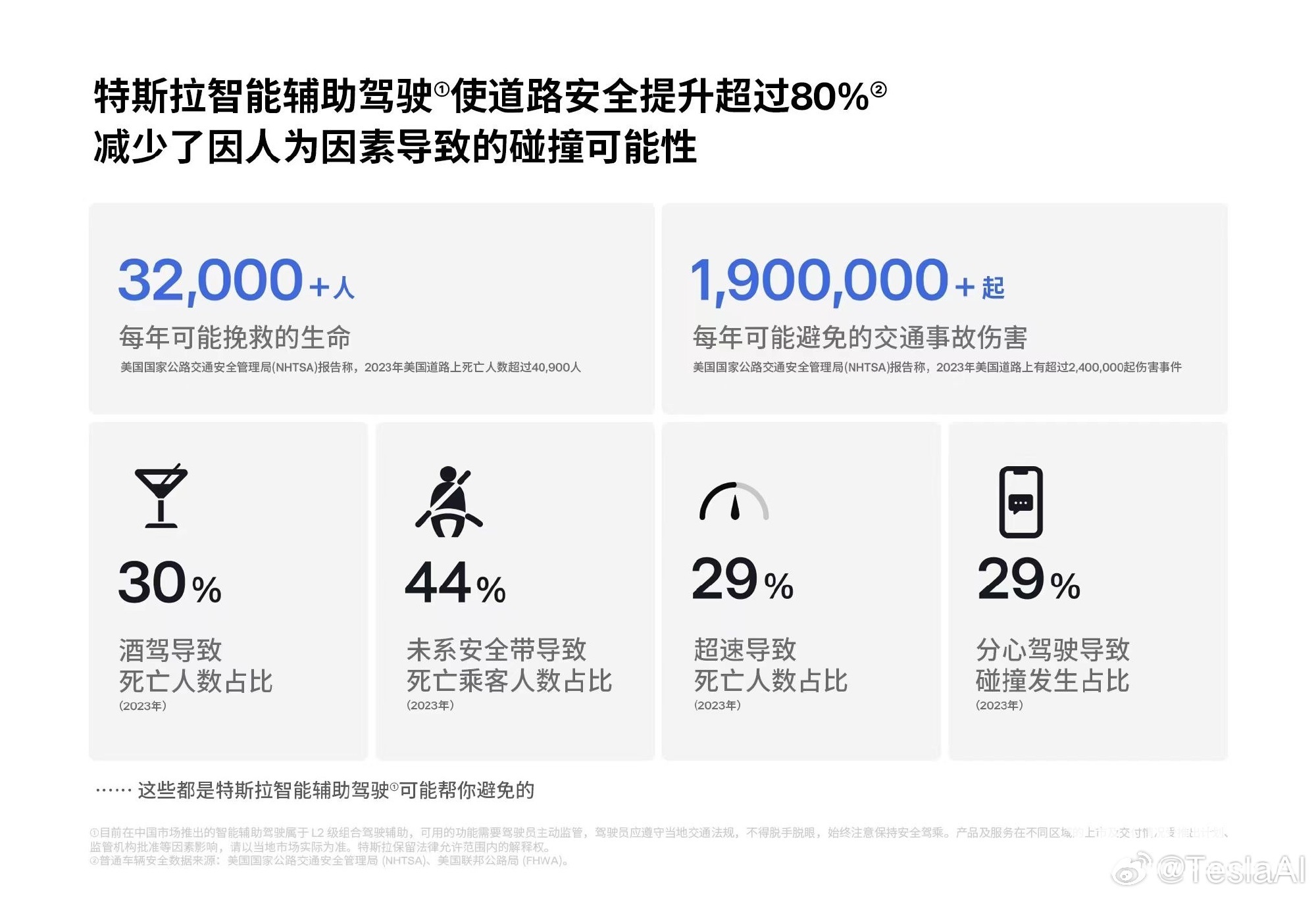 “TeslaAI”强调,搭配世界模型训练,特斯拉智能辅助驾驶拥有了远超任何人类的驾驶经验。并且,它永远不会酒驾、分心和疲劳驾驶。特斯拉认为,辅助驾驶技术的进步将挽救更多生命。