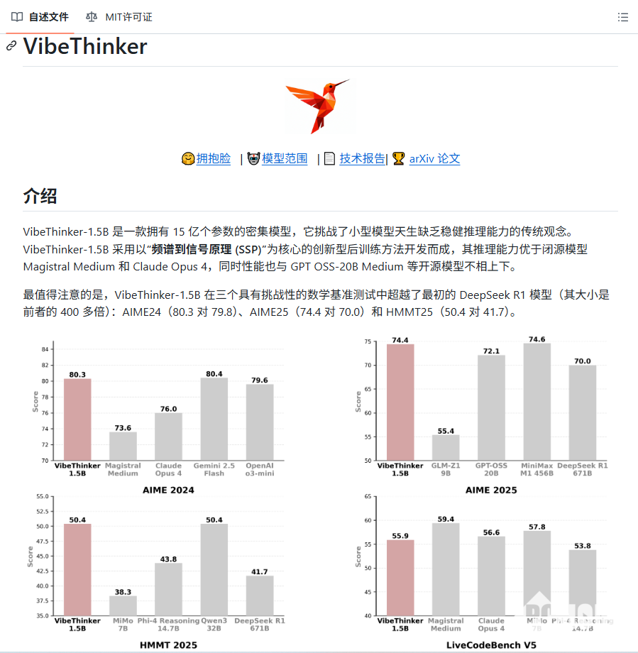 近日,微博自主研发的Vibe Thinker开源模型,在国际顶级数学竞赛基准测试上变现优异,成绩超过了参数规模更加庞大的DeepSeek R1模型。