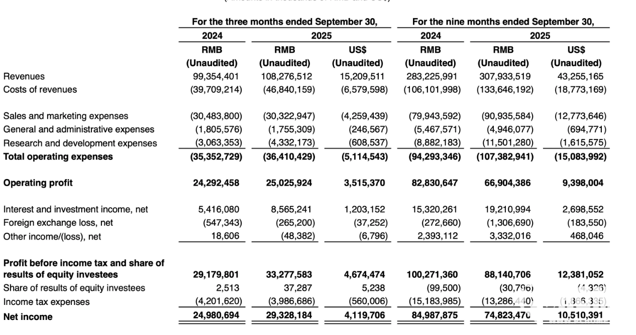11月18日,拼多多发布截至9月30日的2025年第三季度财报,财报显示,拼多多本季度营收1082.8亿元,同比增长9%。