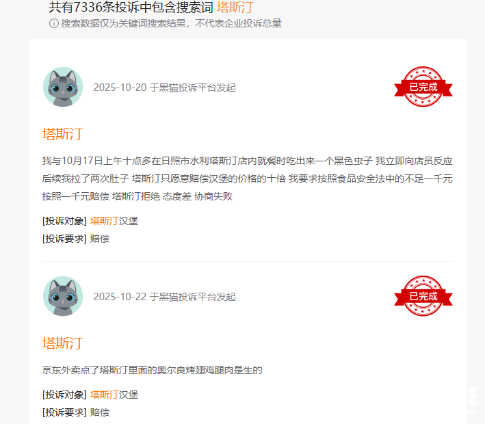 然而,塔斯汀跨入“万店”规模之际,却又陷入品控危机。据黑猫投诉平台显示,针对塔斯汀相关投诉达7336条,主要问题为“吃出异物”“食材问题”等。2022年3月,曾有媒体暗访塔斯汀门店,存在缺斤少两、使用过期食材、员工修改食材有效期、后厨卫生环境差等乱象。面对舆论压力,塔斯汀总经理杨兵在内部信中表示,“我们要承认,在对一线门店的监管上,我们塔斯汀是存在明显的失职的……同时也帮助我们清醒意识到我们在监管环节所存在的疏漏。”