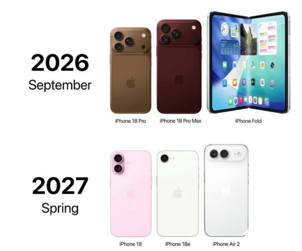 按规划,每年9月的秋季发布会将聚焦高端机型,2026年届时将推出iPhone 18 Pro、Pro Max及首款折叠屏iPhone等三到四款旗舰机型。2027年3月-4月的春季发布会则主打中端与入门款,包括iPhone 18、iPhone 18e及升级版iPhone Air。调整后苹果每年将推出五至六款iPhone新品。