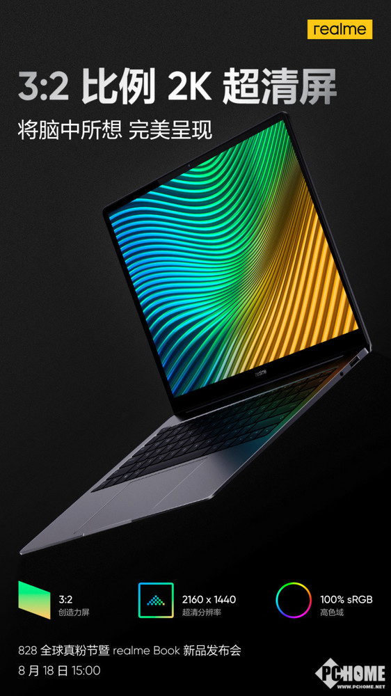 比如在屏幕方面,realme Book将配备一块14英寸2K分辨率屏幕,屏幕比例为3:2,覆盖100% sRGB色域。