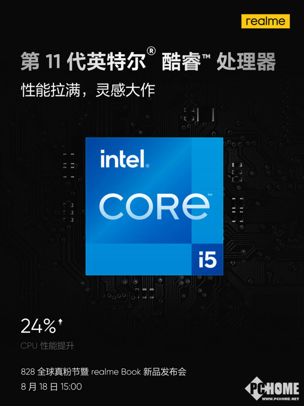 性能方面,realme Book将搭载英特尔11代移动酷睿i5处理器,CPU性能提升24%。