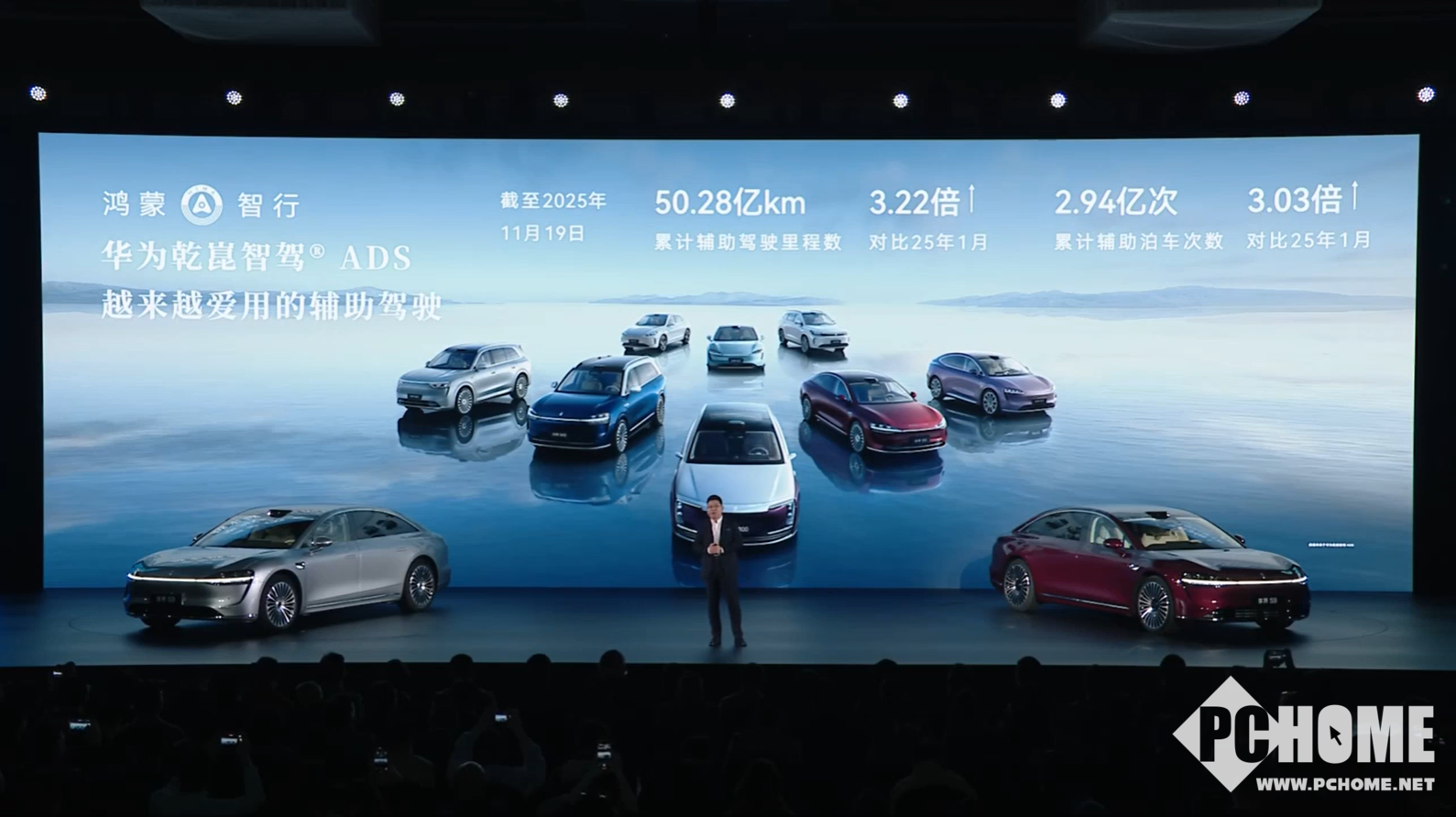 余承东透露,截至2025年11月19日,华为乾崑智驾ADS累计辅助驾驶里程达50.28亿公里,同比2025年1月增长3.22倍;累计辅助泊车次数达2.94亿次,同比增幅达3.03倍。