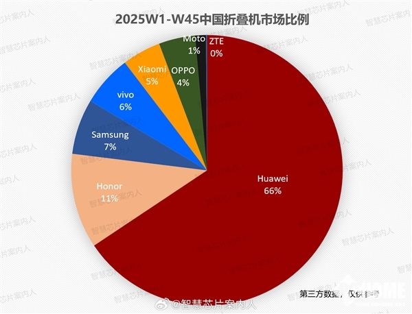 11月20日,博主“智慧芯片案内人”今天发文透露,中国市场的折叠屏手机(含Fold和Flip)出货量已经超过2024年全年。从整体份额来看,今年华为拿下了国内市场66%的份额,独占2/3市场,不仅远远超越其他所有厂商,甚至还大幅领先他们的总和。