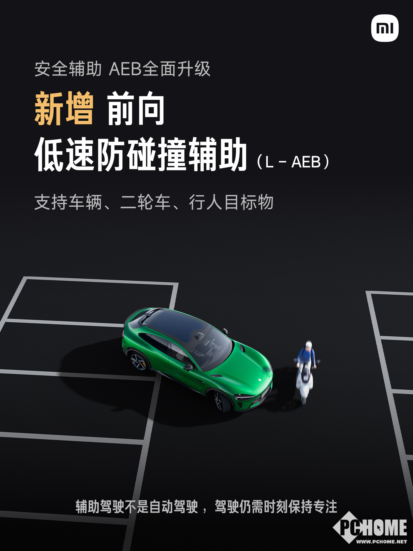 2025年11月21日,在广州车展上,据小米汽车介绍,“Xiaomi HAD 增强版”AEB全面升级。新增前向低速防碰撞辅助、新增后向低速防碰撞辅助还有新增的AES紧急转向辅助功能。