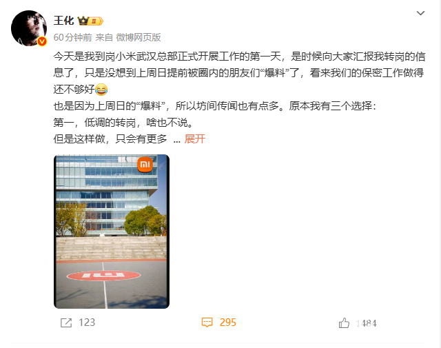 2025年11月21日,王化微博发文称,卸任小米公关部总经理,公开回应此次为“正常轮岗”,并强调“没有任何原因”,不要对此过度解读。