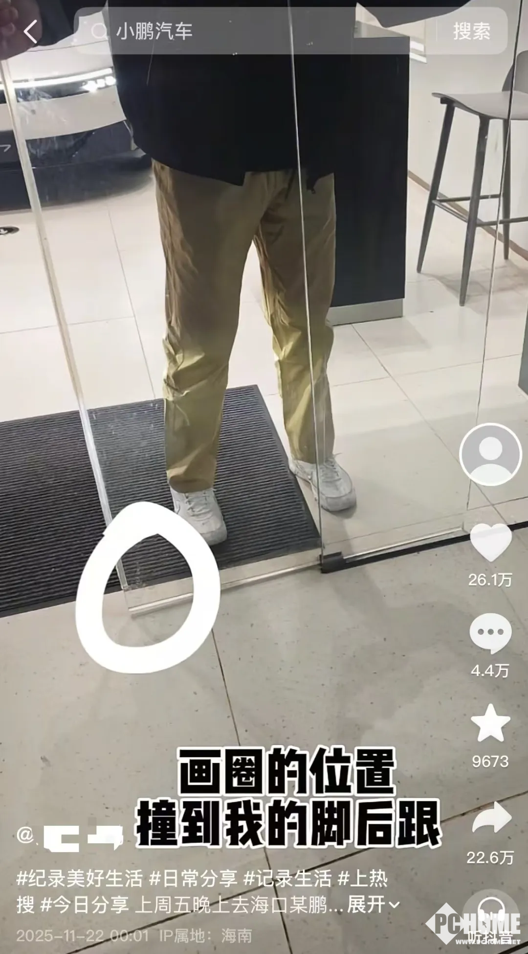 近日,封面新闻报道,一顾客在海南小鹏汽车海口南海大道4S店试驾时,被销售引导至门口查看车辆。行至电动感应门区域时,被告知试驾车已被人开走,该顾客转身返回瞬间,感应门突然自动闭合夹住其抬起的脚,导致门体脱轨、玻璃边缘破损。随后,该顾客与导购互加微信,约定下次再来试驾。
