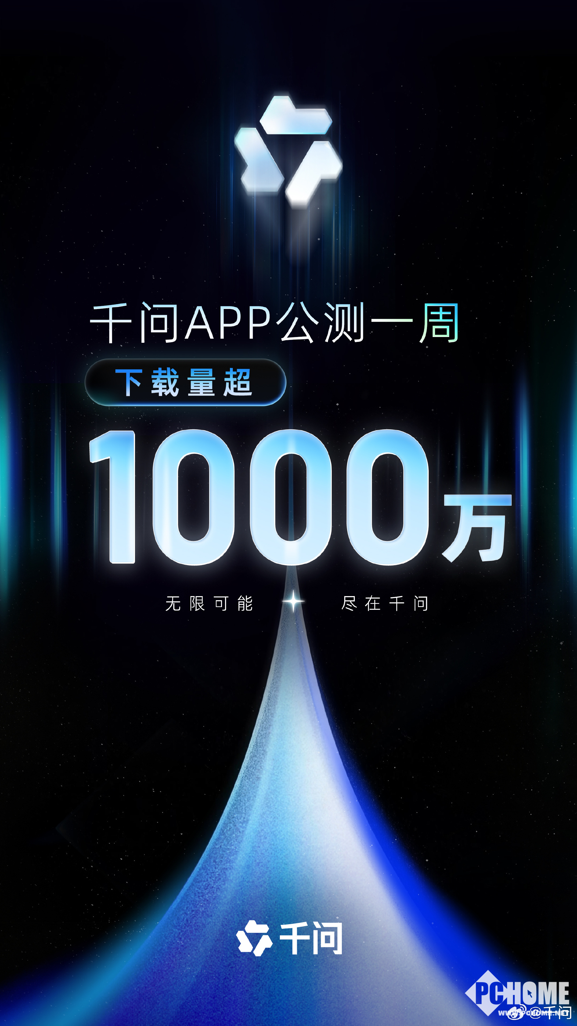 2025年11月24日,千问官微发布消息称,公测一周,千问APP下载量突破1000万,成为史上增长最快的AI应用。