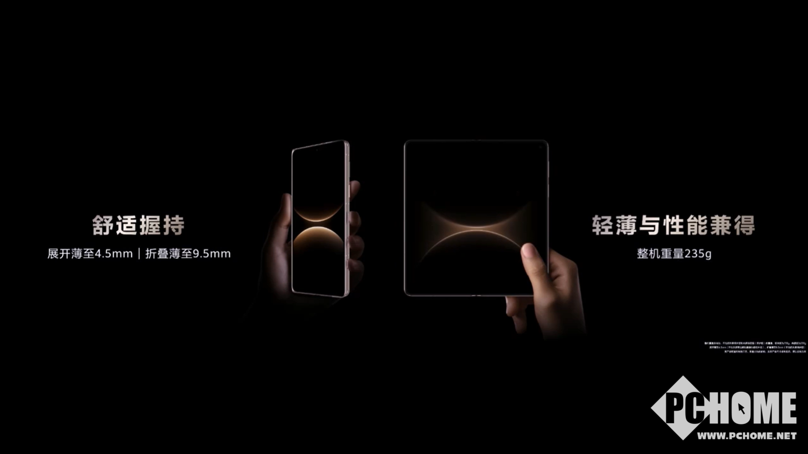 华为Mate X7在轻薄设计上实现突破:展开厚度仅4.5mm,折叠后9.5mm,整机重量235g,配合超可靠玄武架构铰链,兼顾握持手感与耐用性。