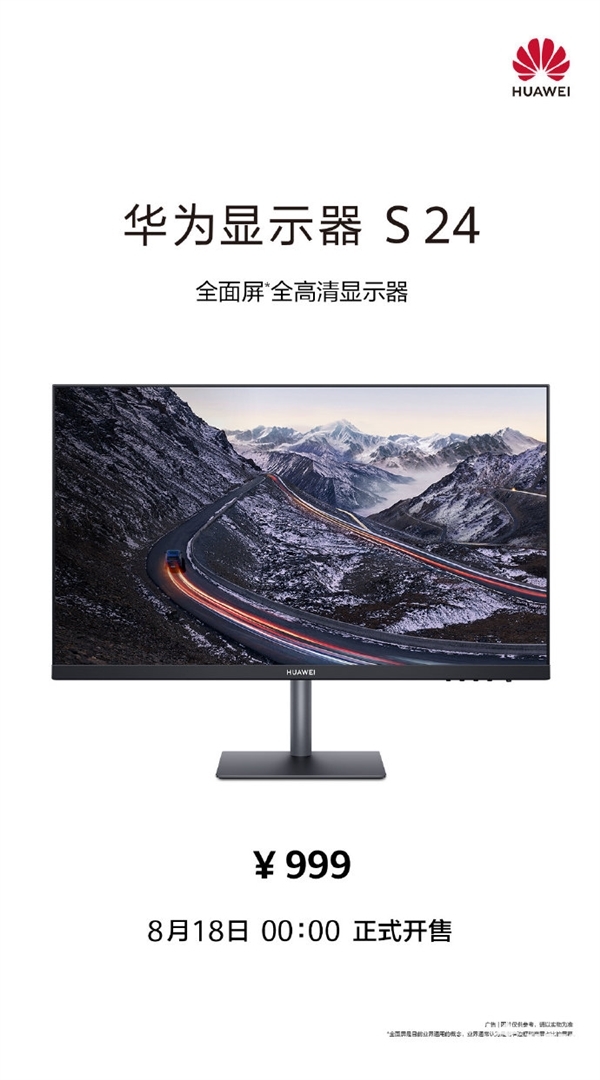 这款显示器名为“华为显示器S24”,其采用24英寸屏幕,1920×1080全高清IPS屏,72% NTSC色域,1000:1对比度,支持75Hz刷新率,支持莱茵双重认证,低蓝光无频闪,有助于长时间办公室降低对眼睛的伤害。