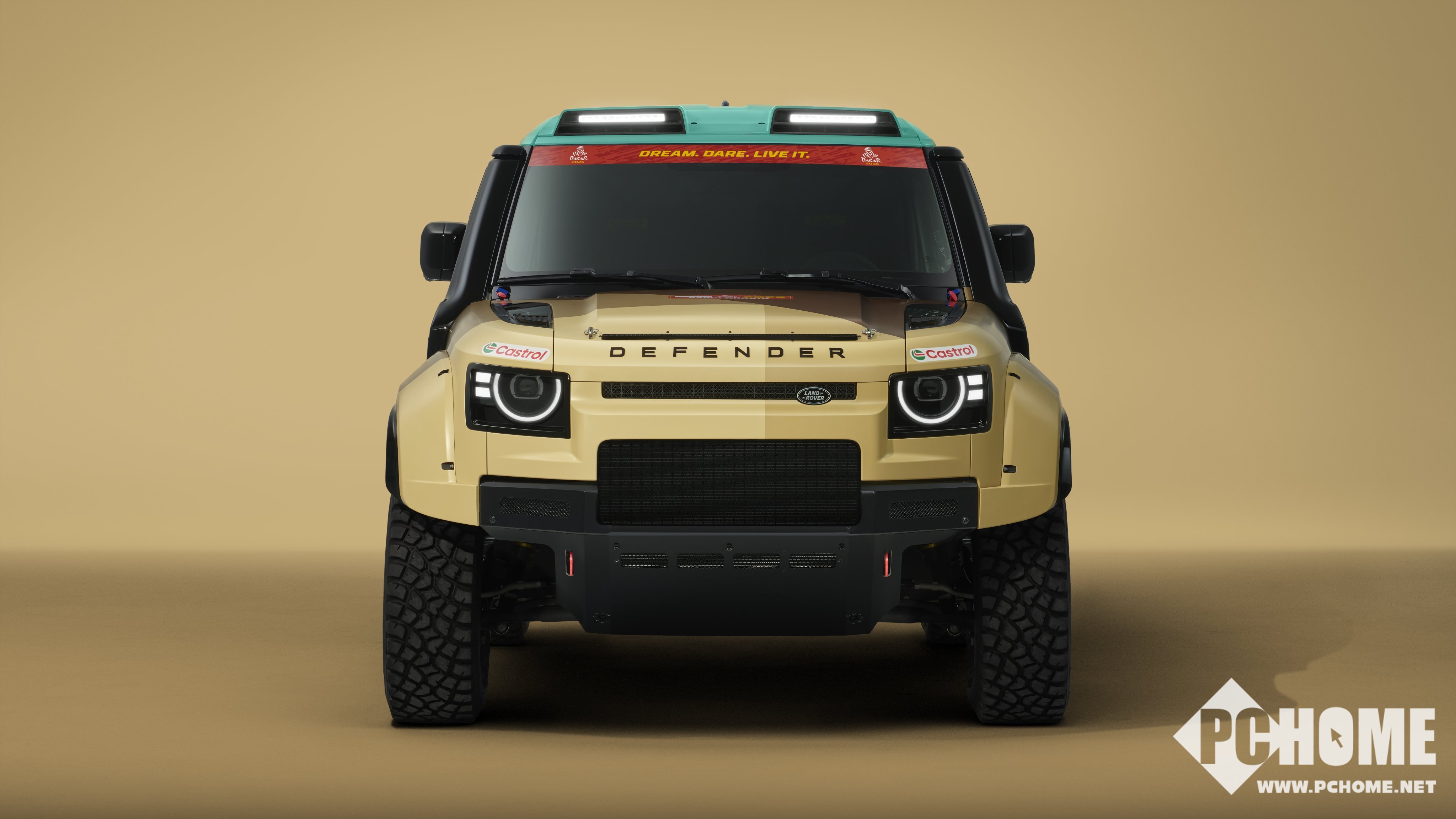 路虎Defender Dakar D7X-R外观比早期原型车更激进,包括宽体翼子板、保险杠和侧门槛的开孔、带通风口的发动机、双涉水喉以及车顶LED灯组等。同时,该车搭载4.4升双漩涡轮增压VB发动机,使用可持续燃料,匹配八速自动变速箱。