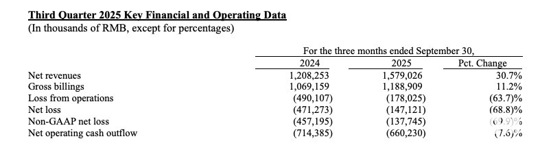 2025年11月26日,高途披露2025年Q3财报,收入为15.790亿元,同比增长30.7%;净亏损为1.471亿元,去年同期为4.713亿元。
