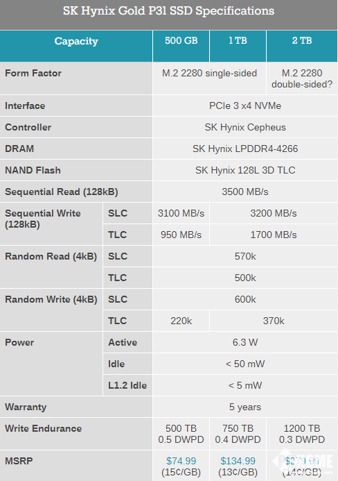 近日,SK海力士宣布Gold P31 M.2 SSD将增加2TB版本,其PCB也由绿色改成了黑色,仍使用名为Cepheus的主控芯片,最大写入量也提高到1200 TBW。