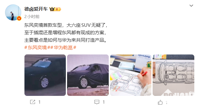 2025年11月27日,博主“德卤爱开车”发布博文,晒出了汽车伪装图,他表示:该车为东风奕境首款车型,大六座SUV无疑了。