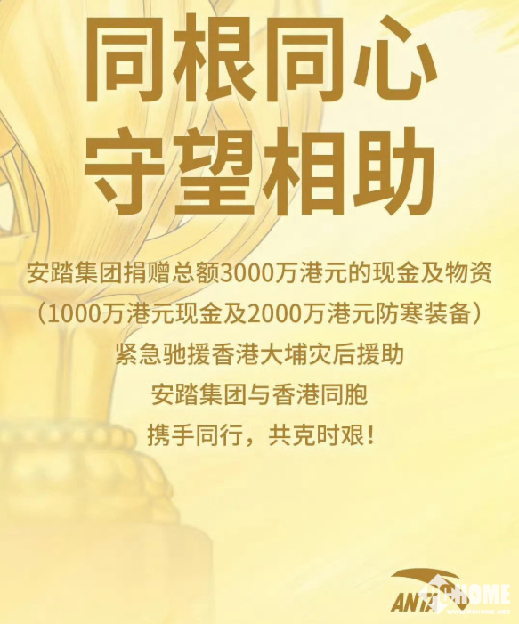 据了解,中国香港大埔宏福苑突发火灾后,11月27日多家内地及香港关联企业迅速捐款驰援。安踏捐3000万港元(含1000万现金及2000万防寒装备);阿里巴巴和周大福各捐2000万港元,阿里还调动应急物资送往灾区。腾讯、小米、蚂蚁集团及AlipayHK各捐1000万港元,分别用于受灾居民安置、医疗救助等不同急需工作。361°集团捐赠1500万港元现金及装备。此外中国红十字会总会捐赠200万元支援救援。