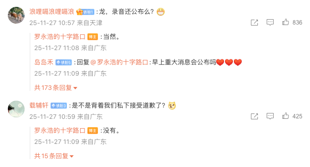 有网友询问罗永浩,“是不是背着我们私下接受道歉了?”罗永浩回应称,“没有。”此外,还有网友询问道,“龙,录音还公布么?”罗永浩表示,“当然。”